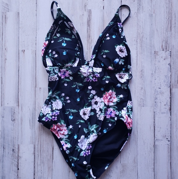 Black Floral One Piece Bathing Suit Nwt cupshe black floral one piece