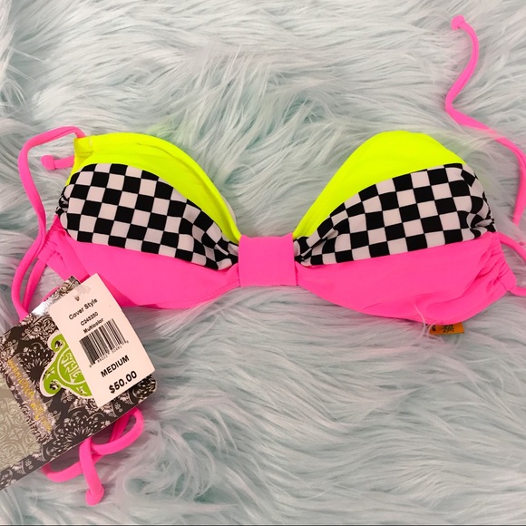 Checker Board Low Scoop Bikini Top checkered flag bikini