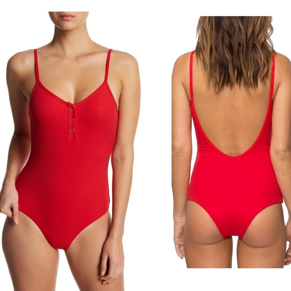red ribbed one piece swimsuit