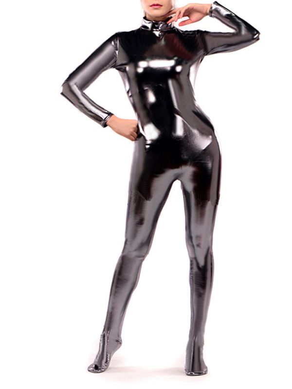 Dark Silver Adult Shiny Zentai Catsuit shiny spandex bodysuit