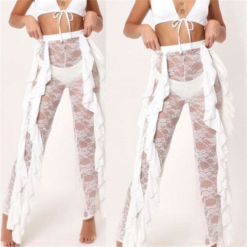 Mesh Ruffles Swimsuit Cover Up Pants lace swimsuit cover up pants