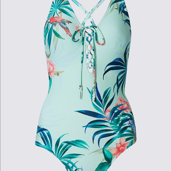 Ms One Piece Suit Mint Tropical Small marks and spencer one piece swimsuits